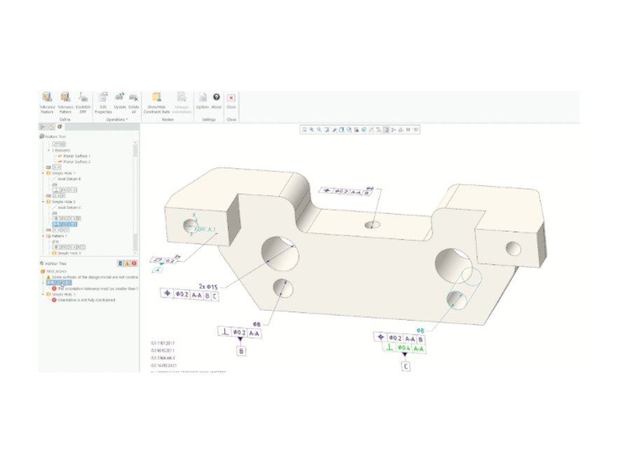 In Model Based Definition, the 3D model becomes the sole product specification. Shape and position tolerances must therefore be correctly and completely defined directly in the model in accordance with ISO GPS or the ASME standard.